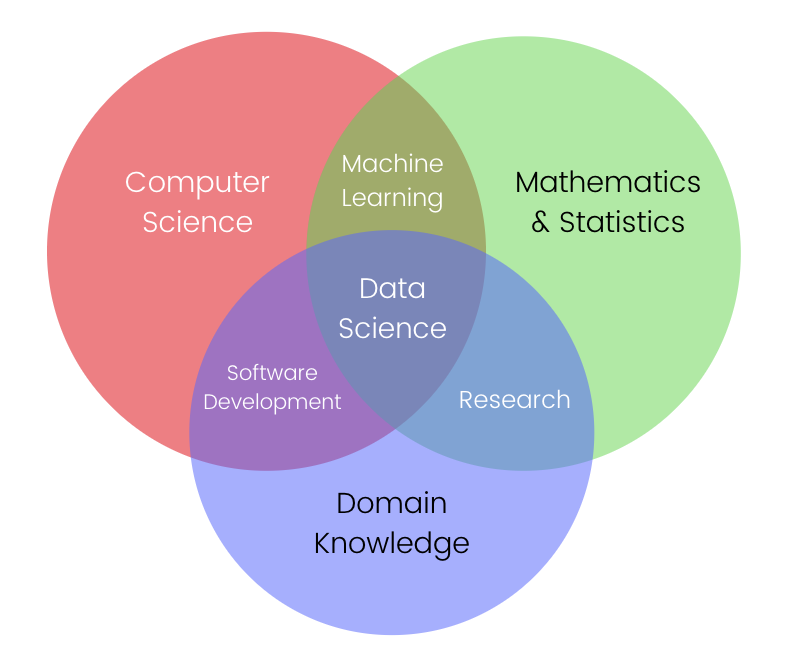 Venn diagram showing overlap of skills in Data Science